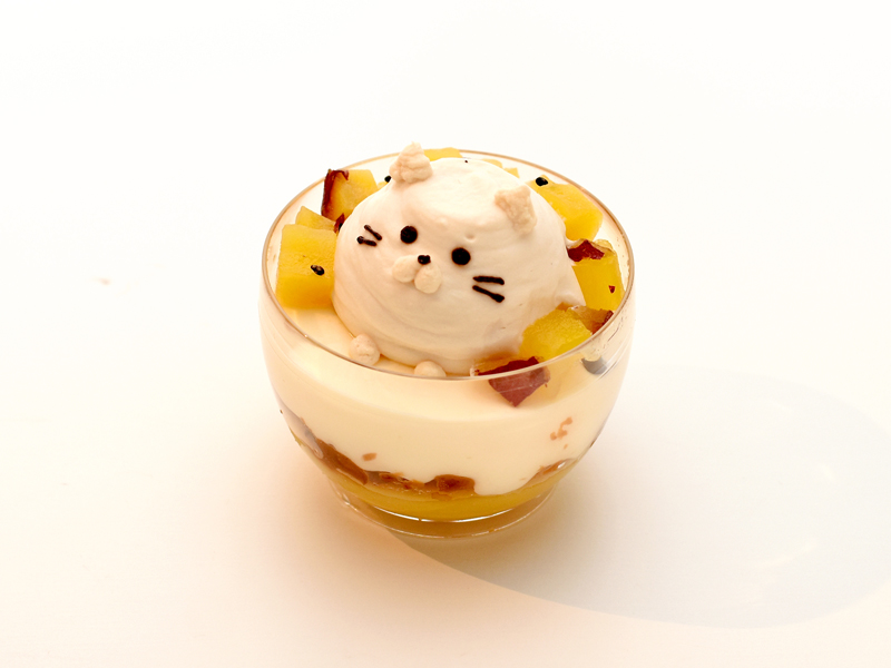 しっとりと甘みの強い紅はるかを使用した、なめらかなスイートポテトをベースに 白味噌のコクを効かせた味噌キャラメルにローストしたくるみを合わせました。 さらに、軽やかなマスカルポーネムースと、ほんのり甘じょっぱいみたらし風味の生クリームを重ね、 和と洋が調和した奥行きのある味わいに仕上げました。